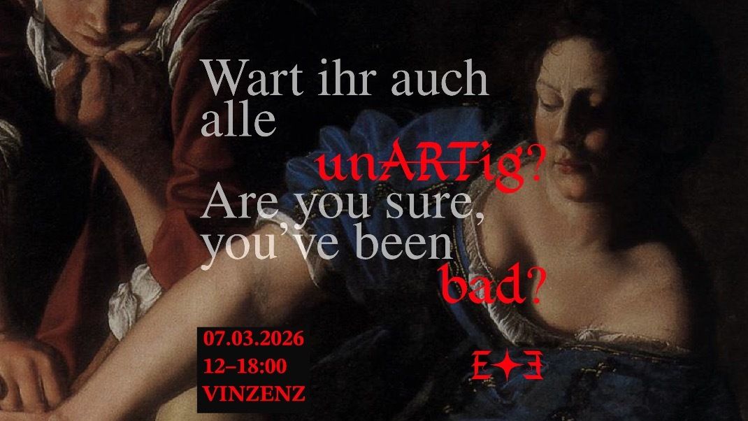 Mit dem Aktionstag „Wart ihr auch alle (un)ARTig?“ laden das Duo Eve’s Eyes in Kooperation mit VINZENZ zu einem humorvollen, feministischen und künstlerischen Erlebnis ein, das traditionelle Vorstellungen von Brav-Sein sowie gesellschaftliche Normen hinterfragt. In einem spielerisch-kritischen Spannungsfeld zwischen Erwartung und Widerstand entsteht ein Raum, der zugleich zum Nachdenken, Mitmachen und Schmunzeln einlädt.